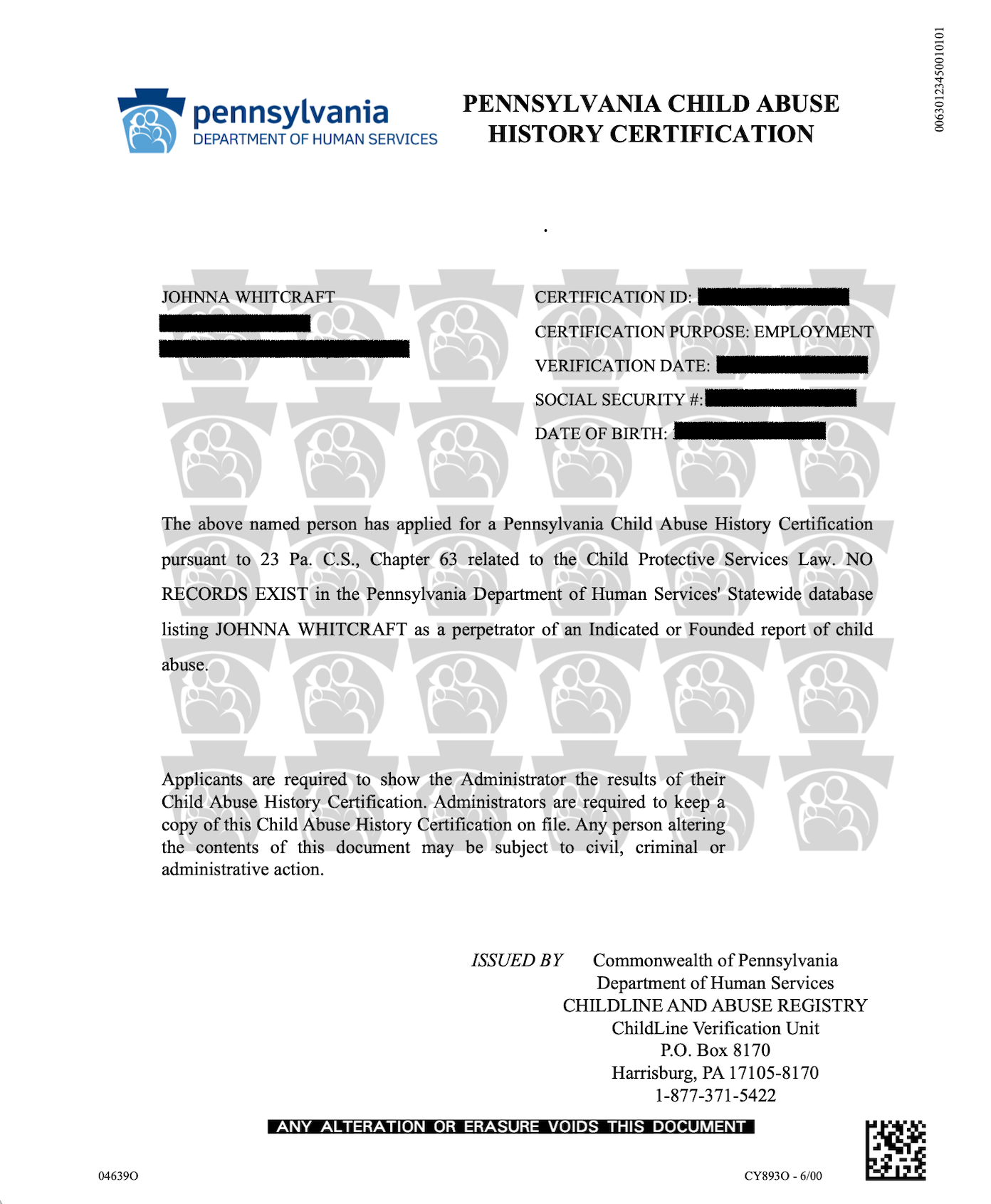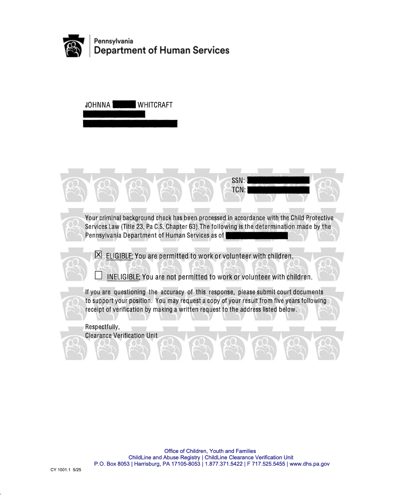 PA Child Abuse History Clearance (ChildLine)